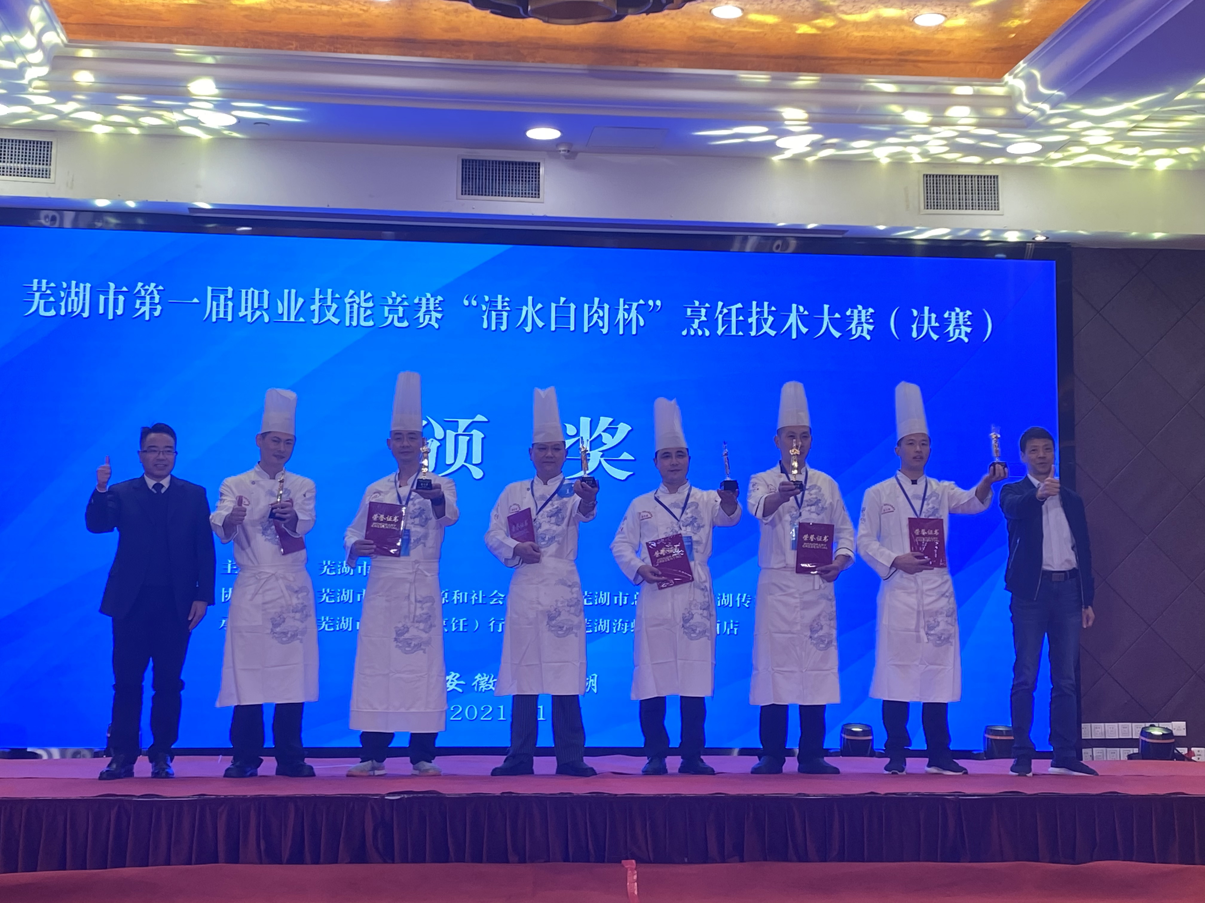 2021年11月15日下午,由市商务局主办、芜湖餐饮(烹饪)行业协会承办的芜湖市第一届职业技能竞赛——中式烹饪大师邀请赛在芜湖海螺国际大酒店顺利举办,我馆副厨师长汪金平代表宾馆参加本次大赛,在激烈的烹饪比拼中,汪金平同志展现了独特的烹饪技巧,赛出了铁山的风采,最终获得“芜湖金勺”奖、大师赛二等奖的好成绩。