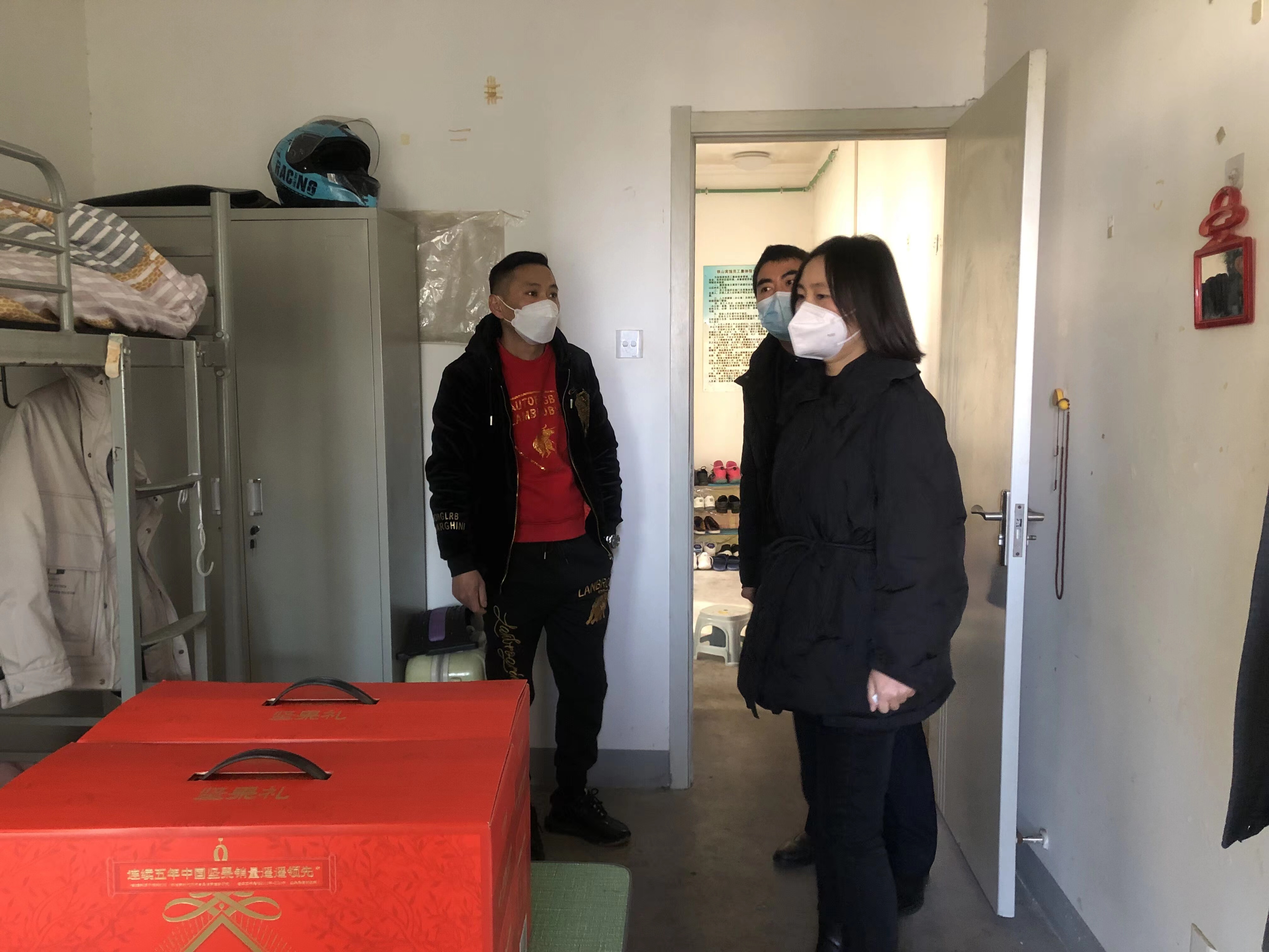 2023年1月17日,新春佳节来临之际,宾馆党委副书记、副总经理齐晓凤带领人力部、餐饮部、工程部共同慰问了宾馆宿舍的员工,向他们致以新春的问候和节日的祝福。
