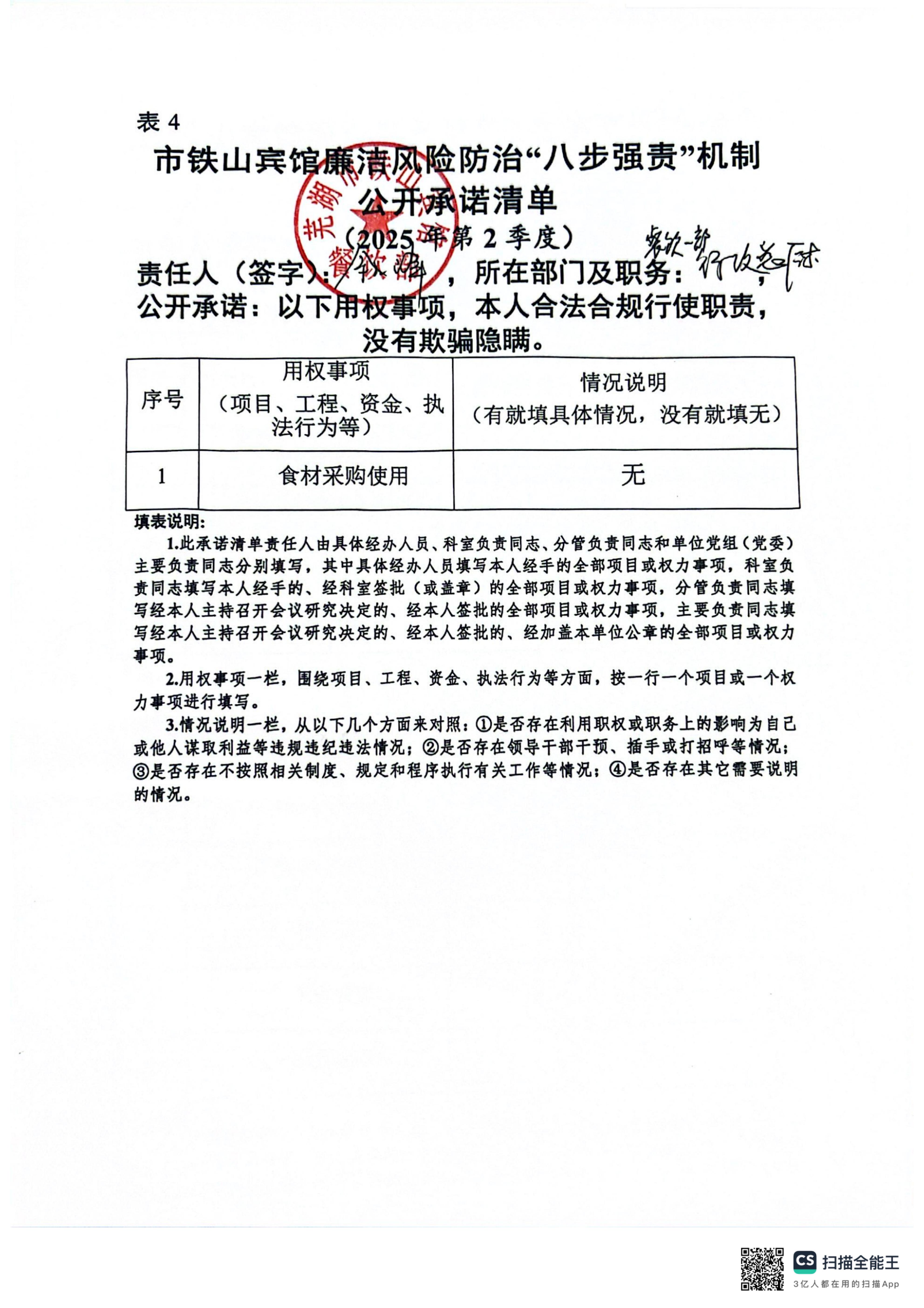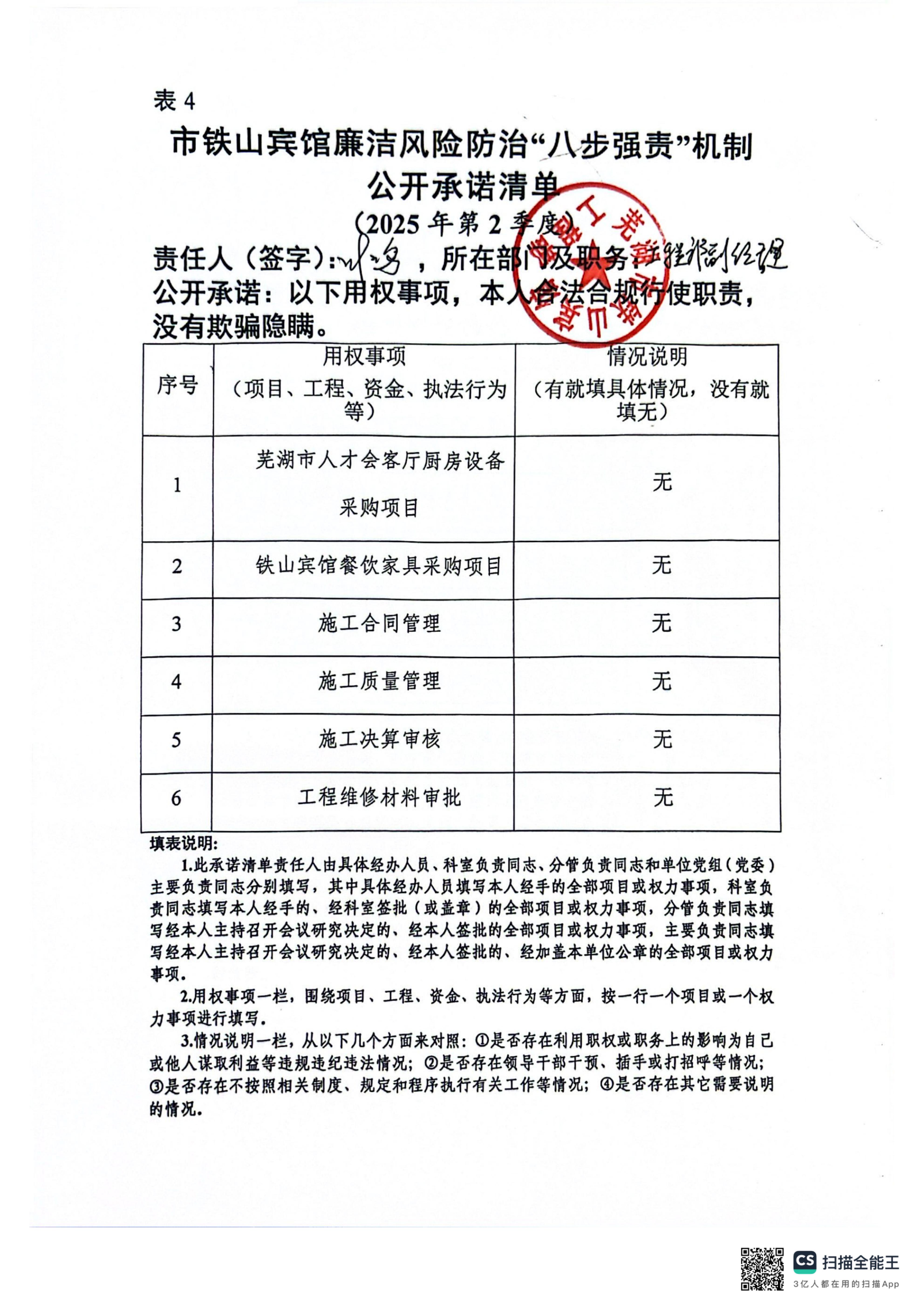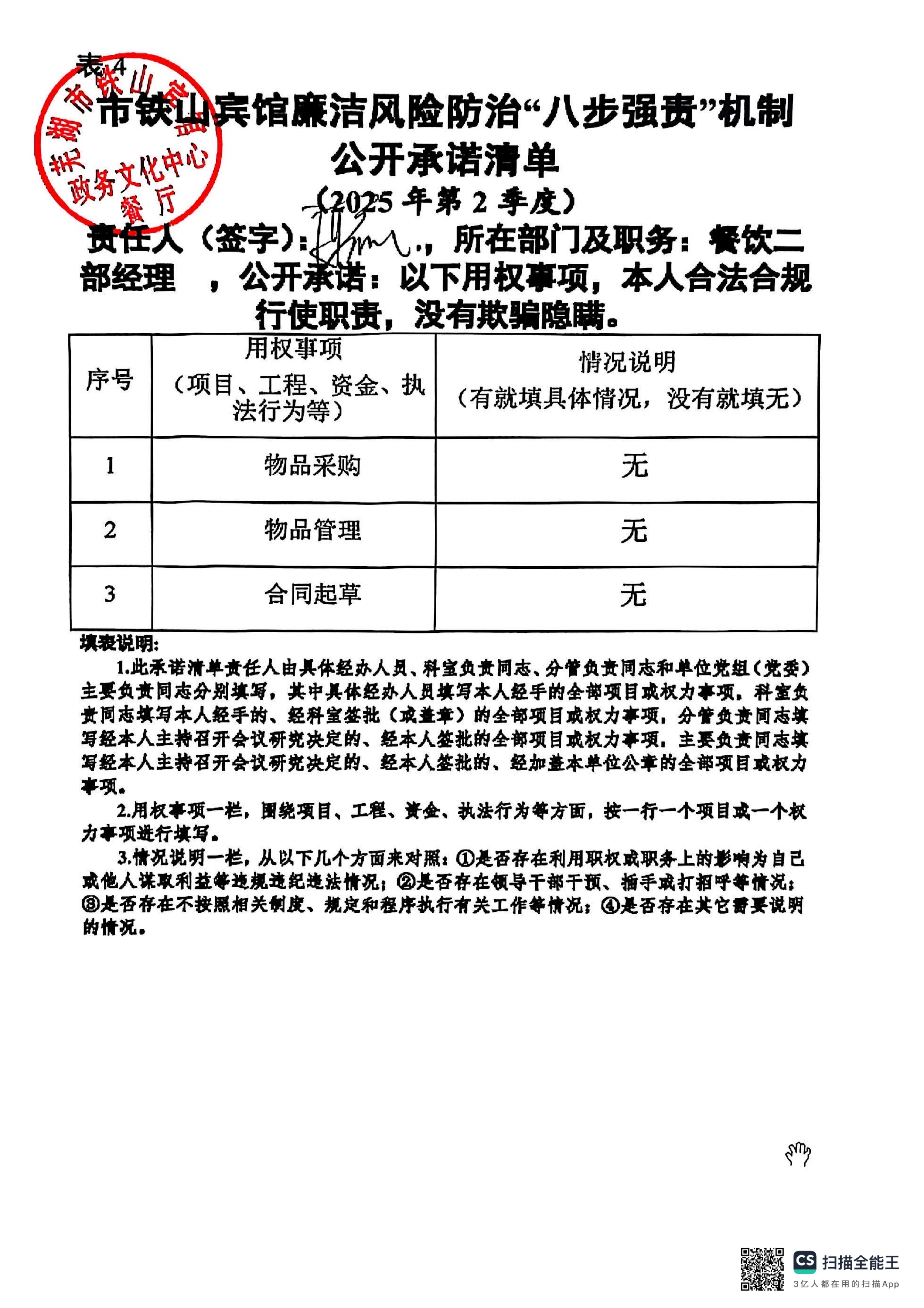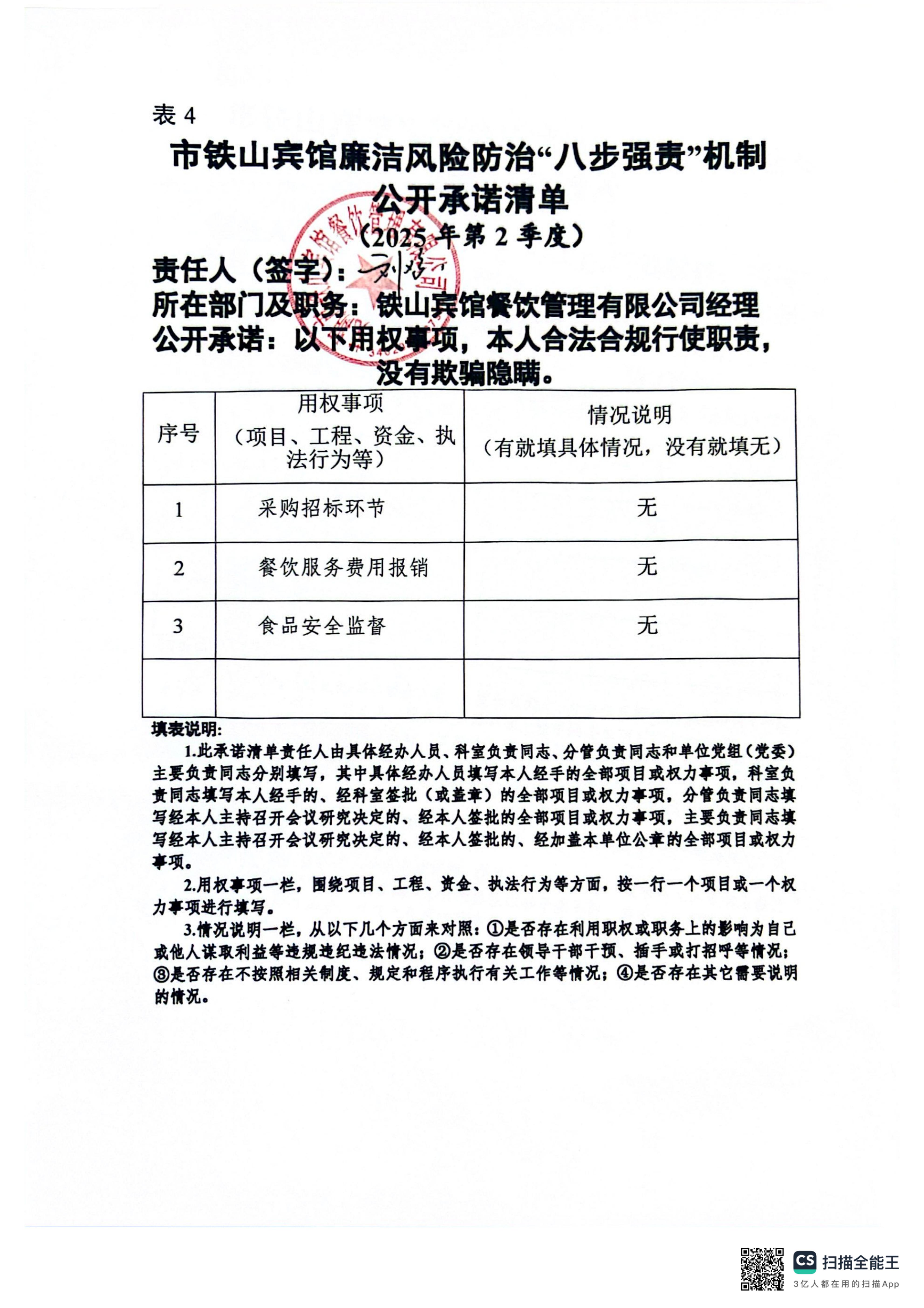 市铁山宾馆廉洁风险防治“八步强责”机制公开承诺清单(第2季度)