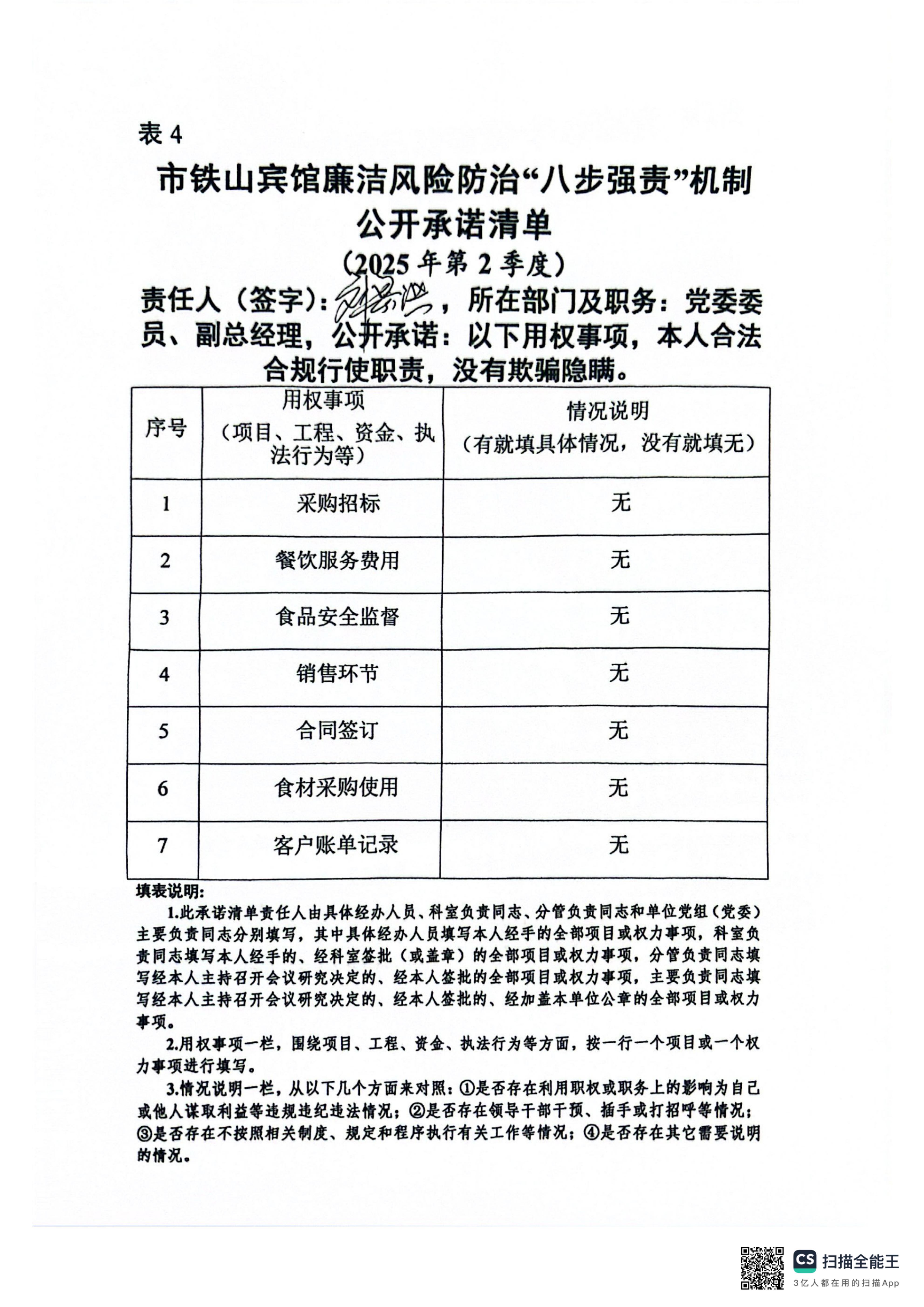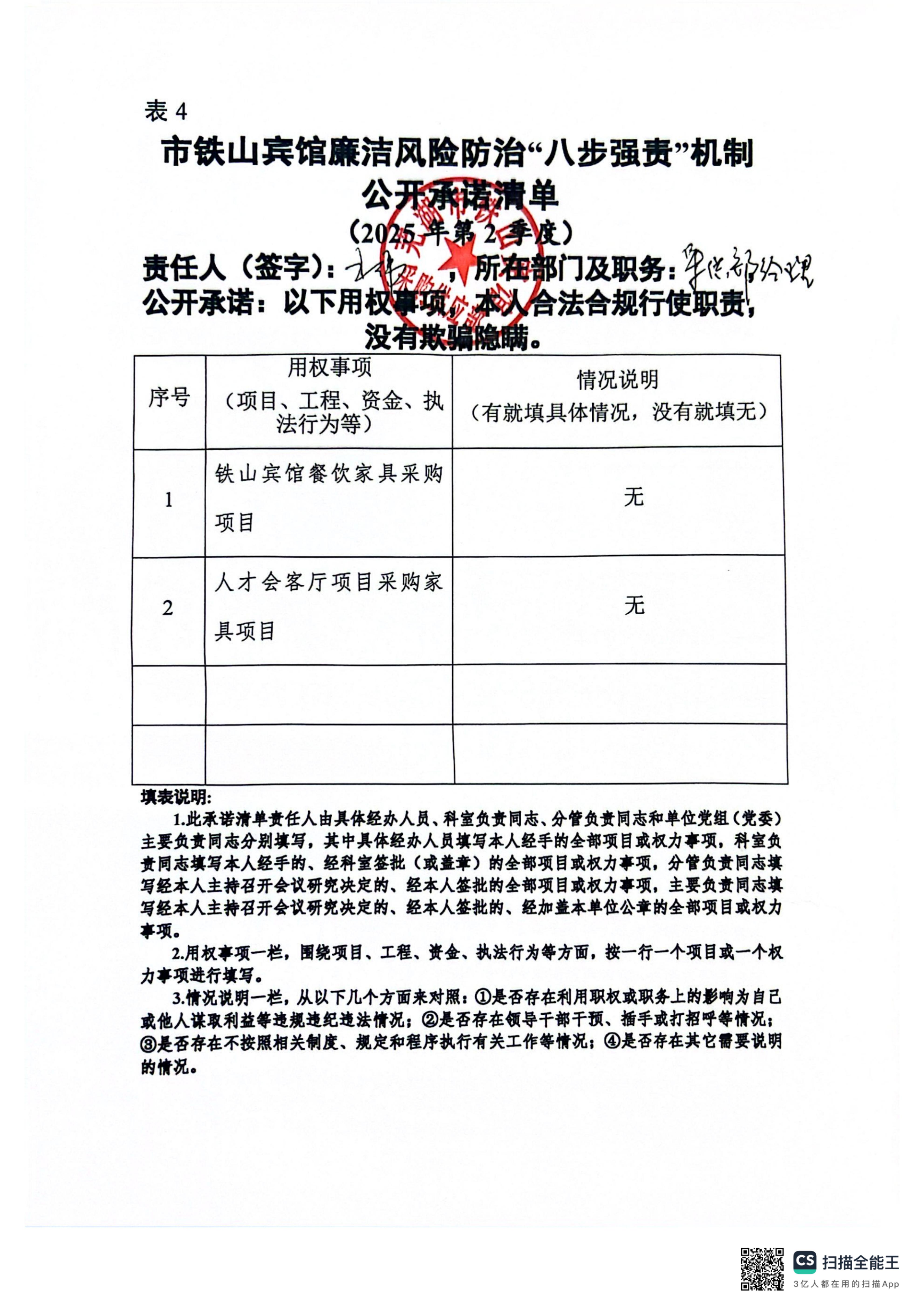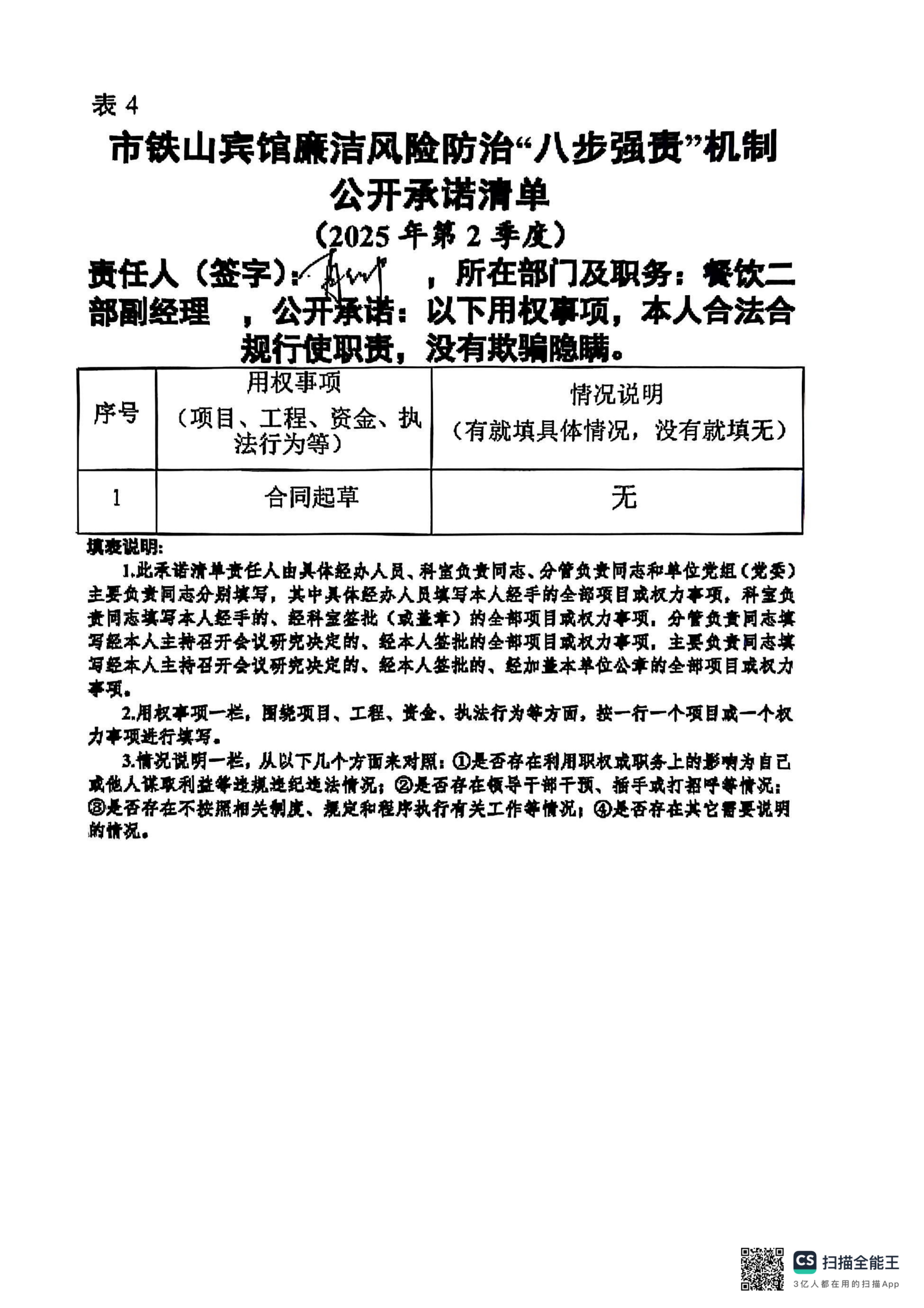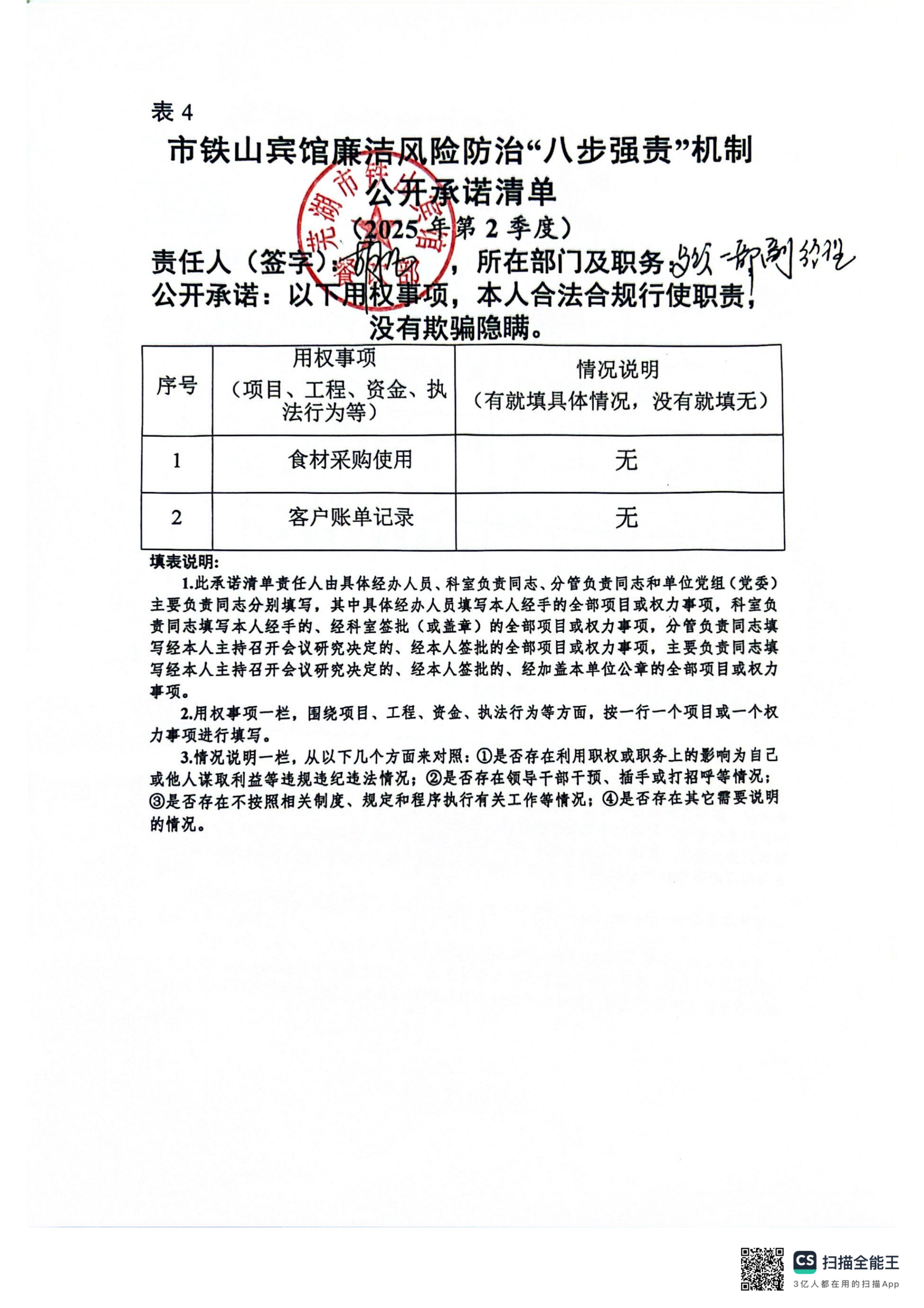 市铁山宾馆廉洁风险防治“八步强责”机制公开承诺清单(第2季度)