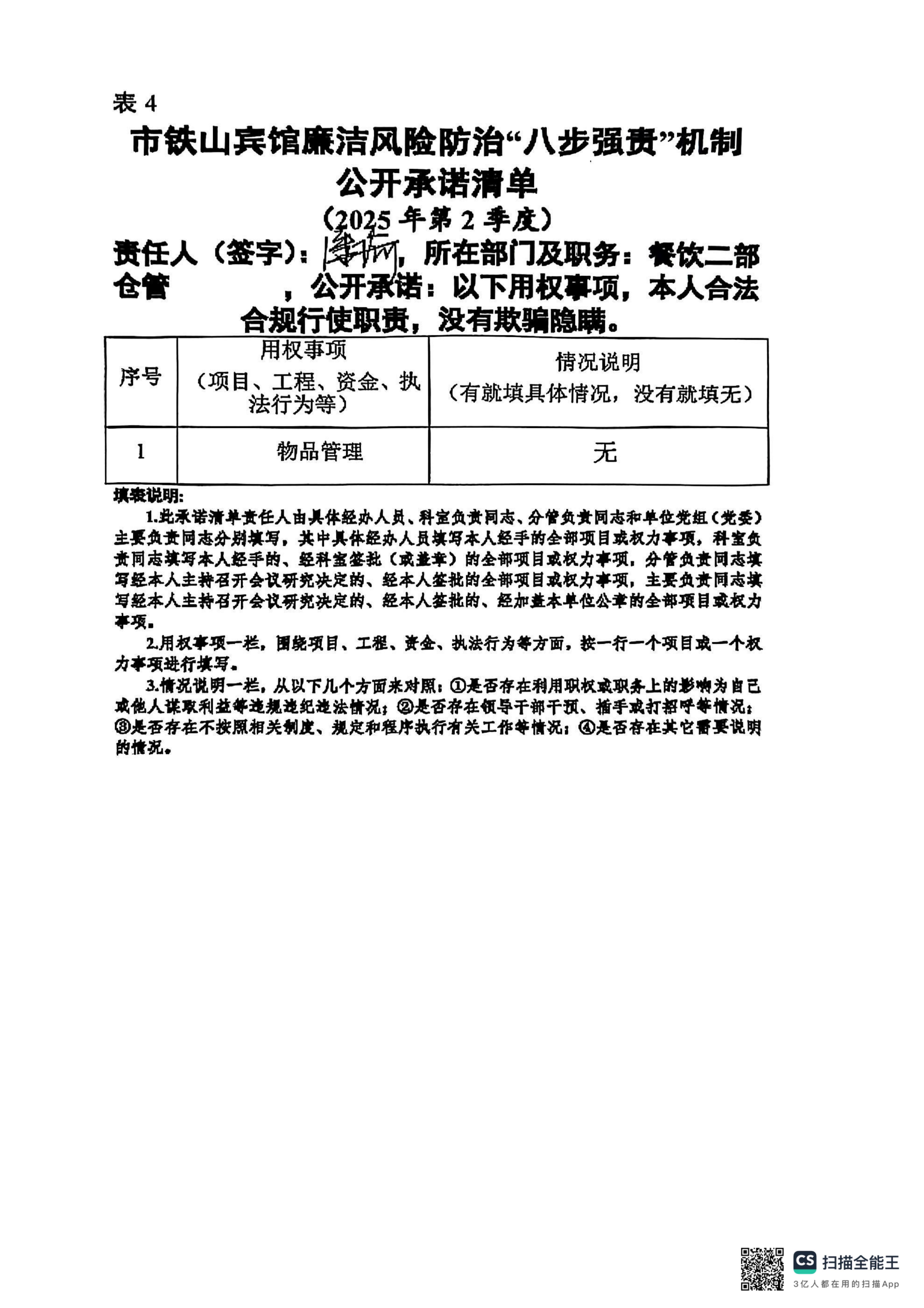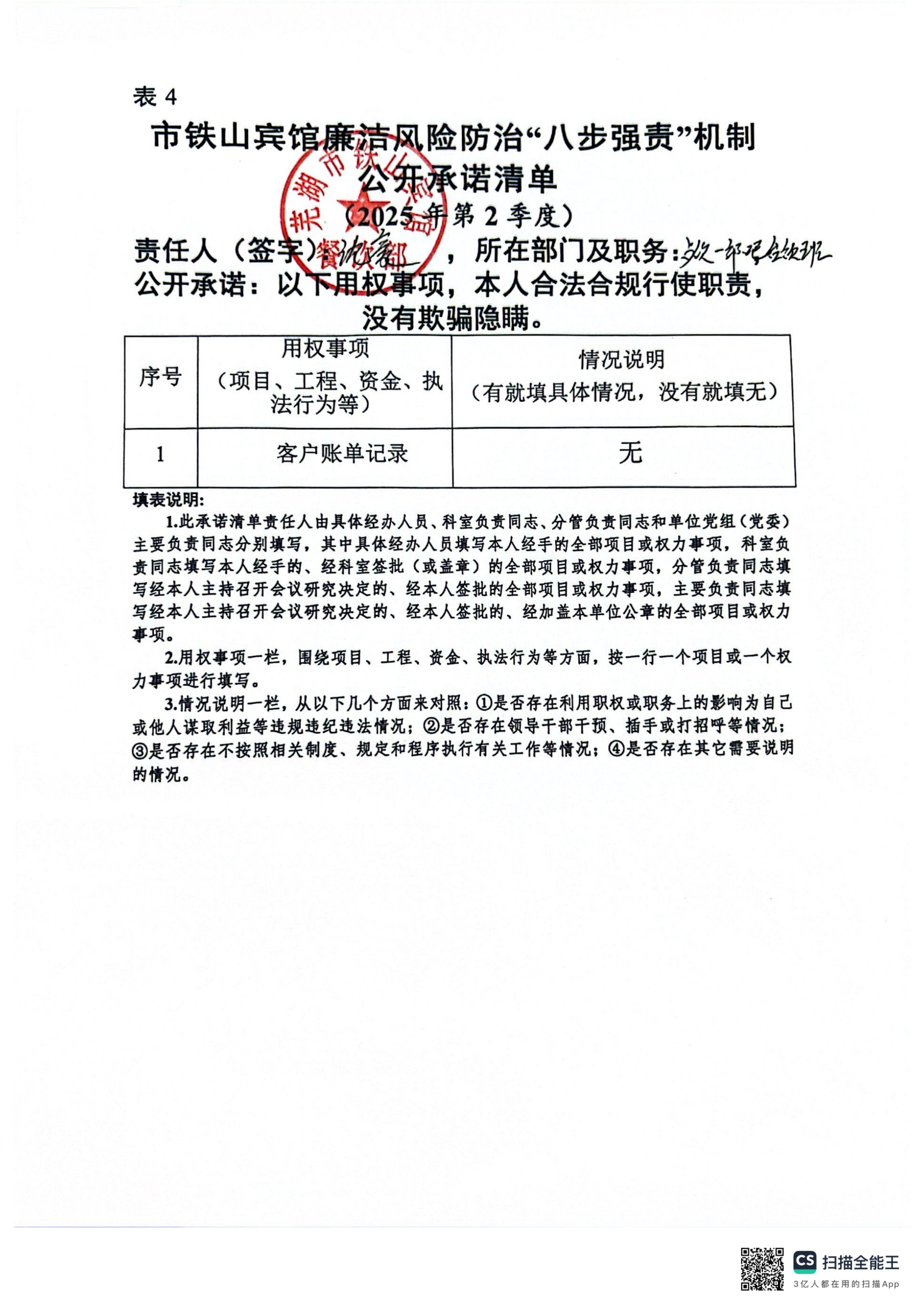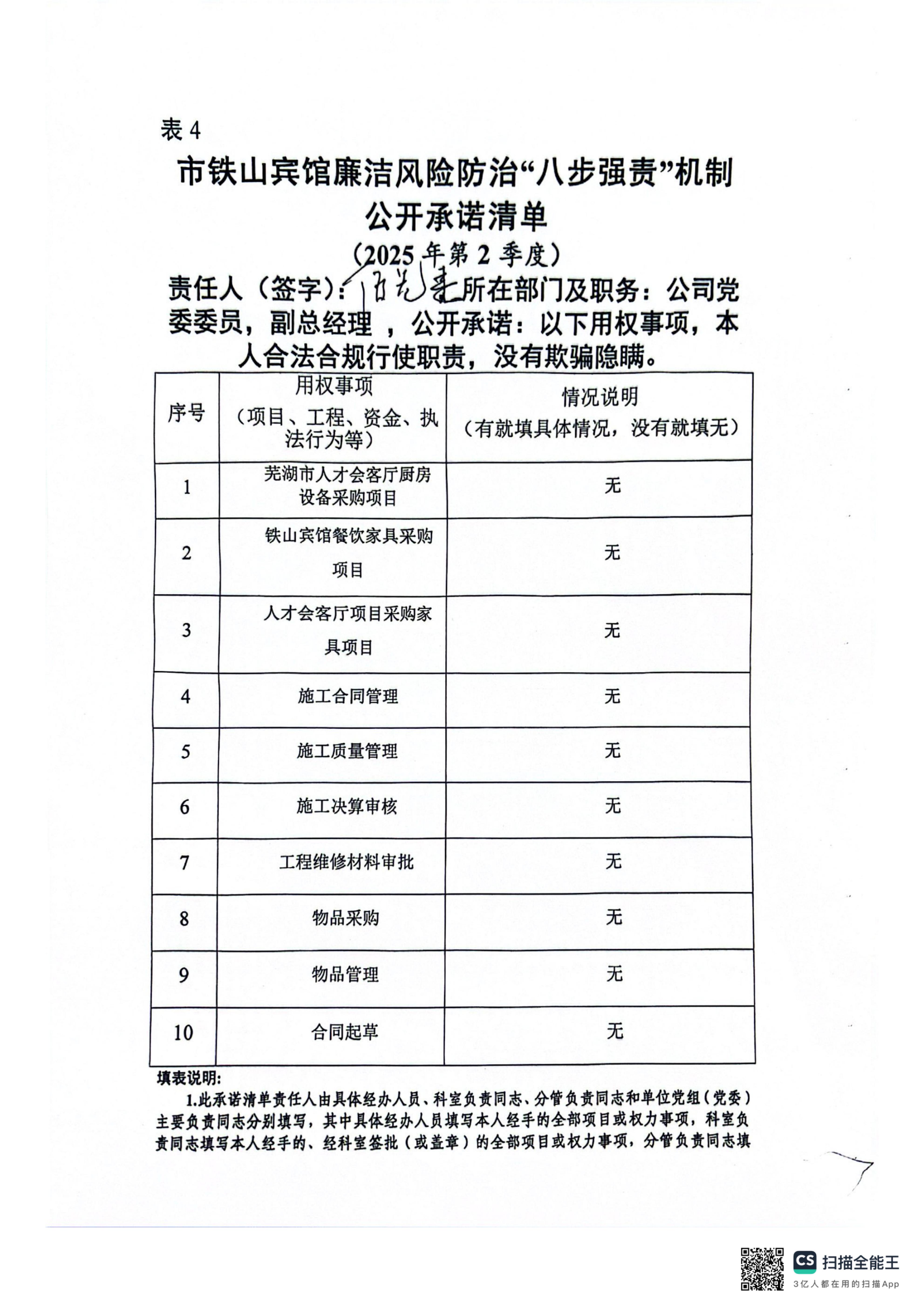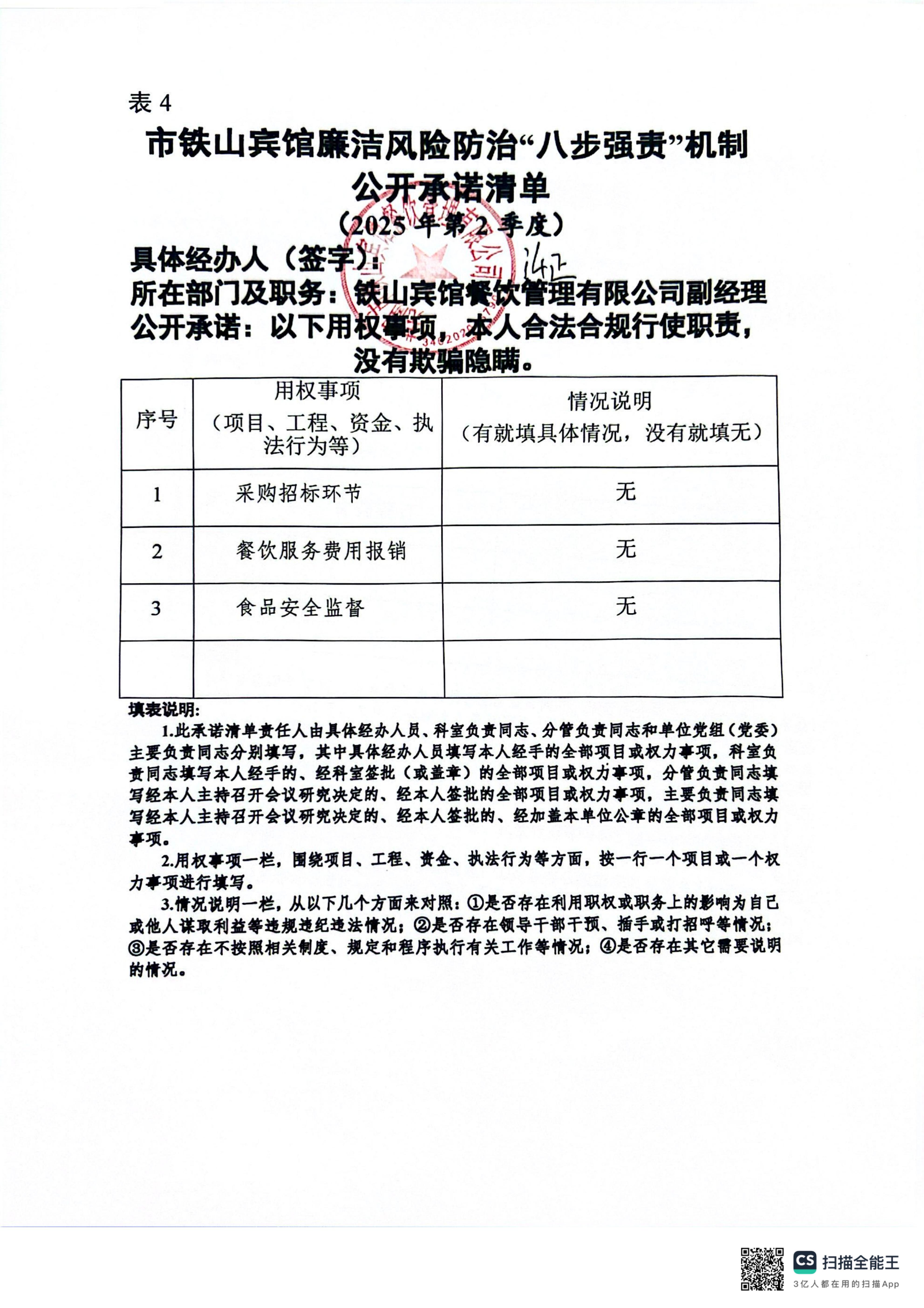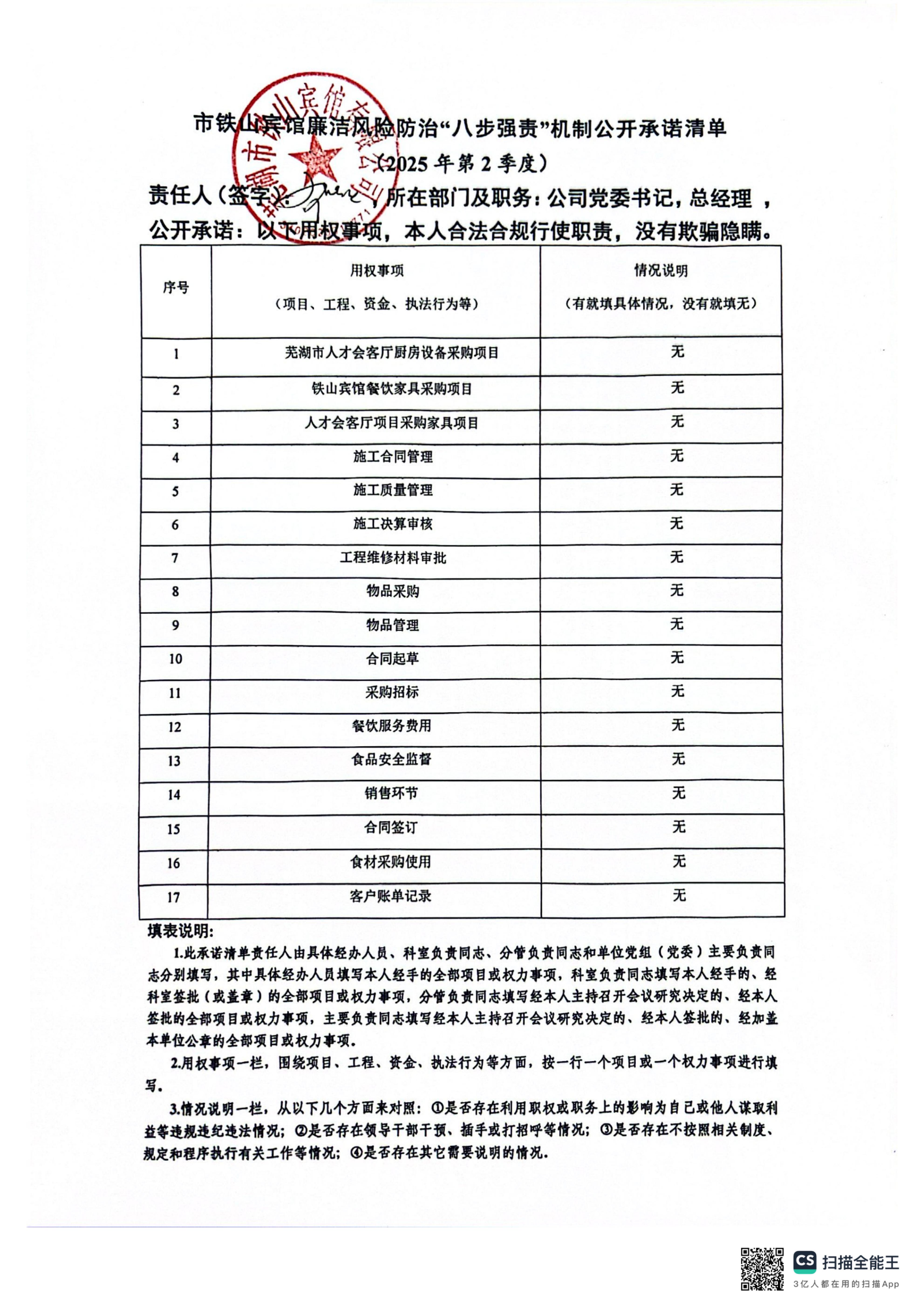 市铁山宾馆廉洁风险防治“八步强责”机制公开承诺清单(第2季度)