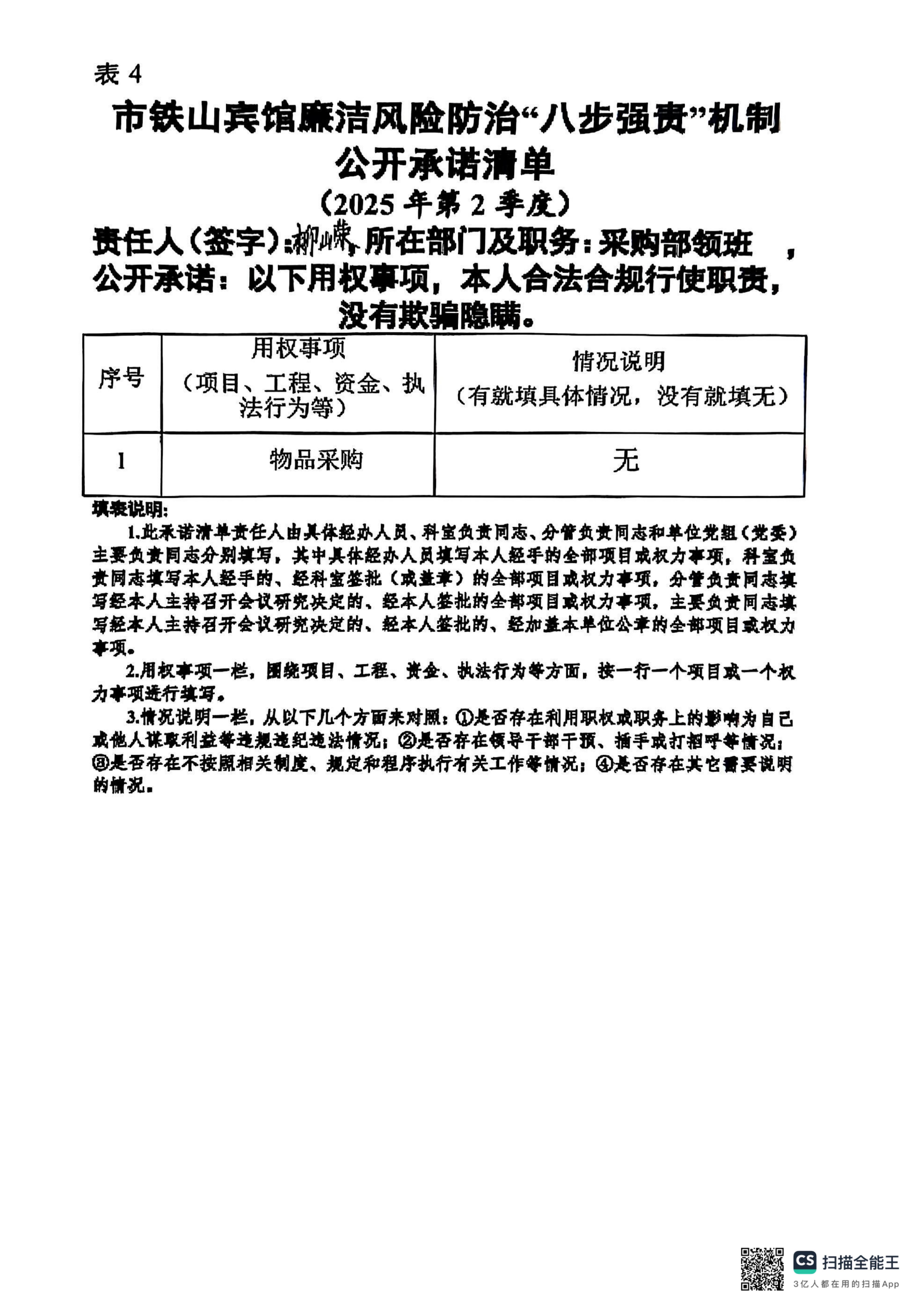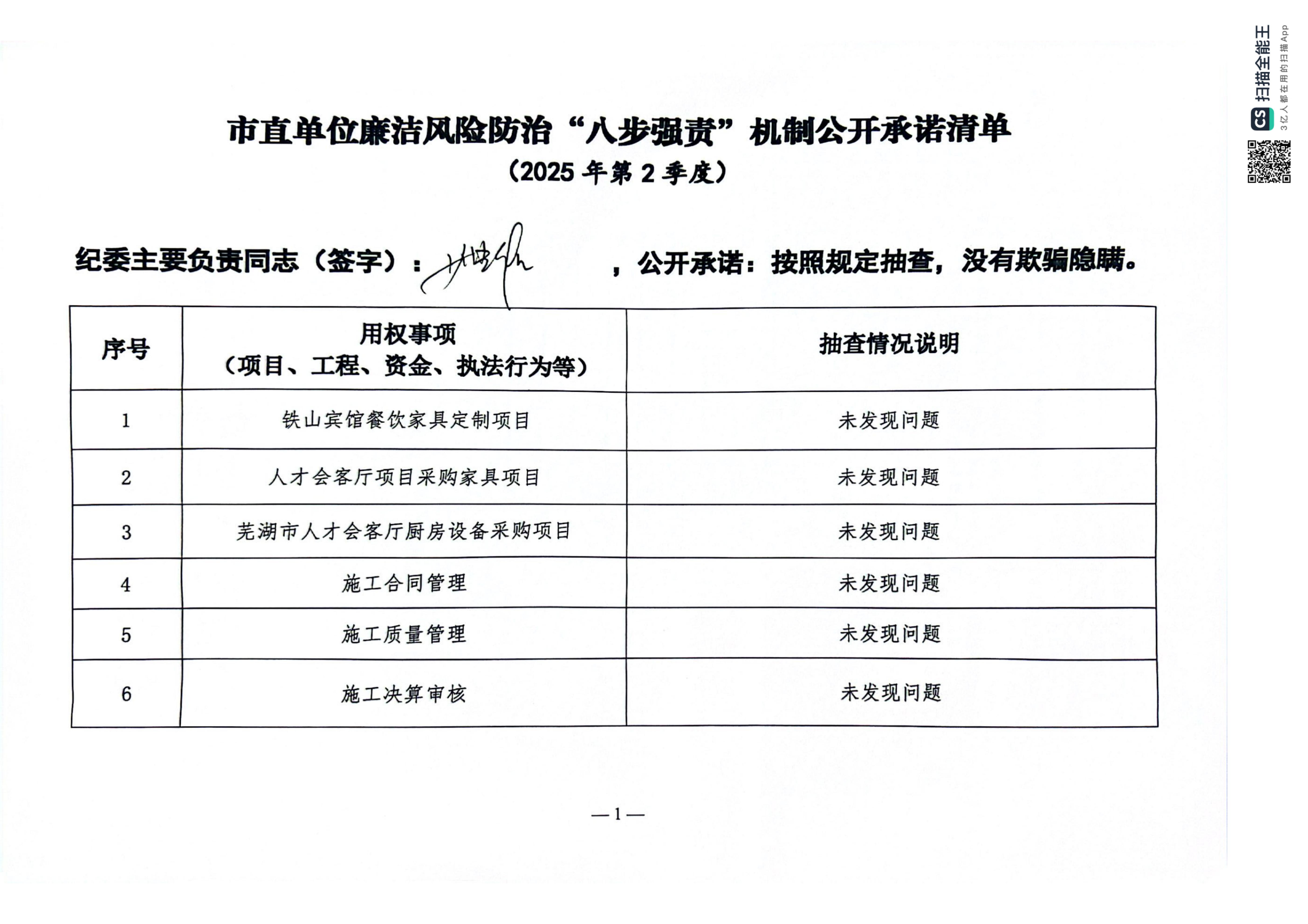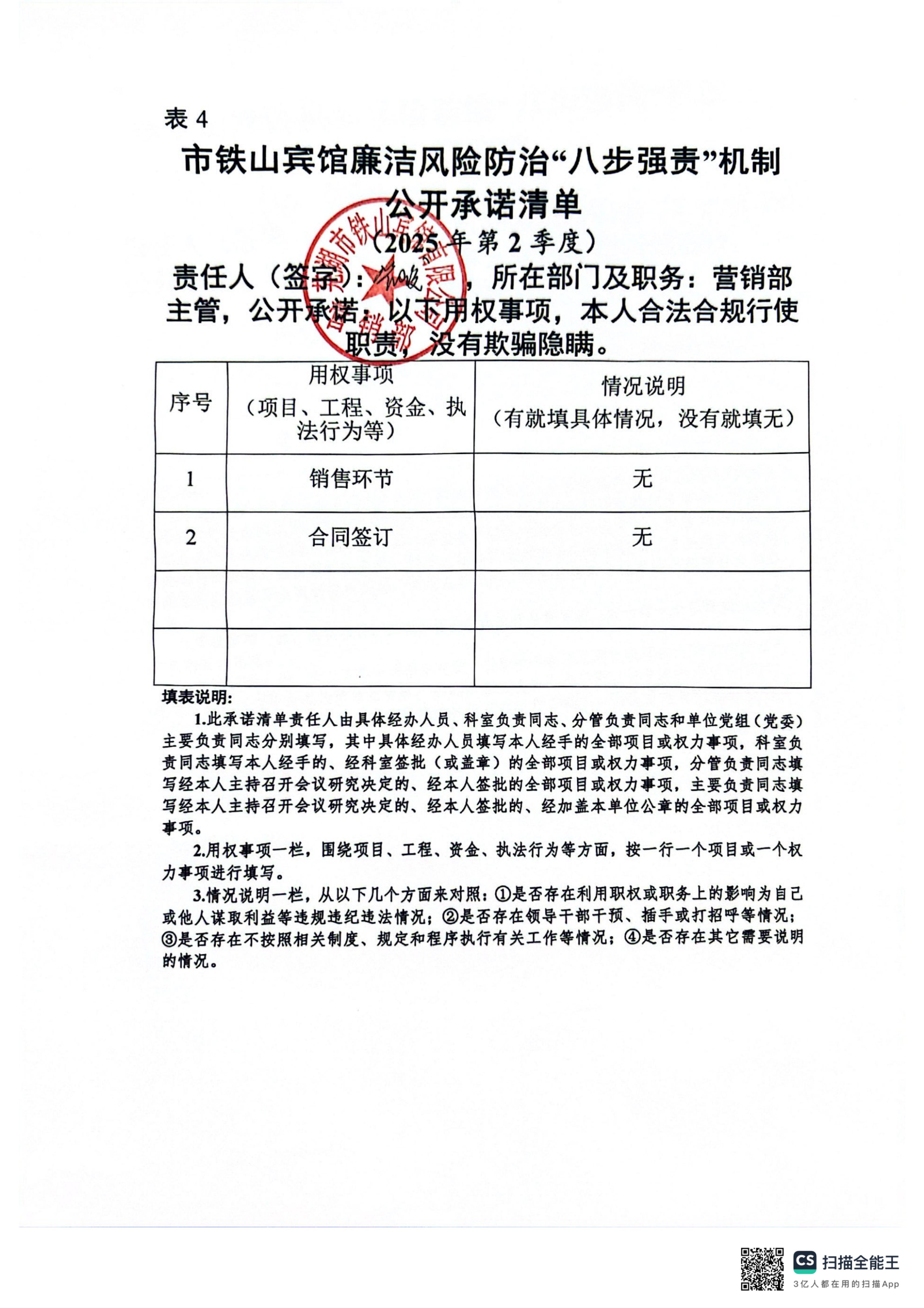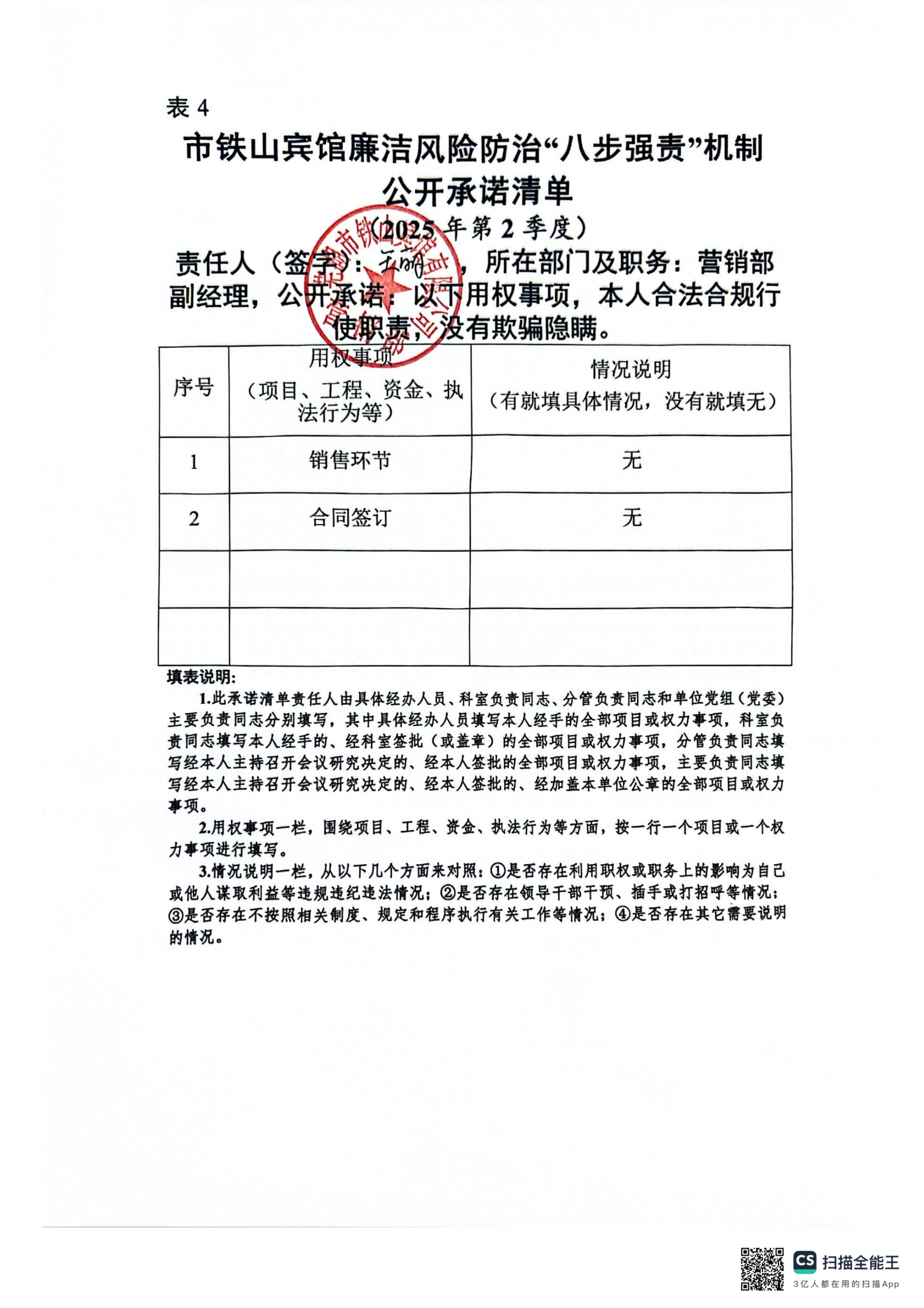 市铁山宾馆廉洁风险防治“八步强责”机制公开承诺清单(第2季度)