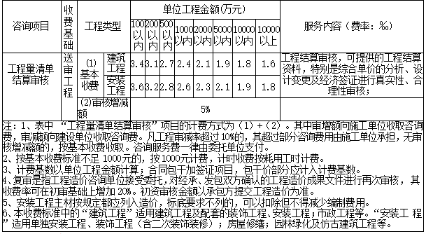 2.计算方法:审计费=(基础收费+核减收费)*成交费率
