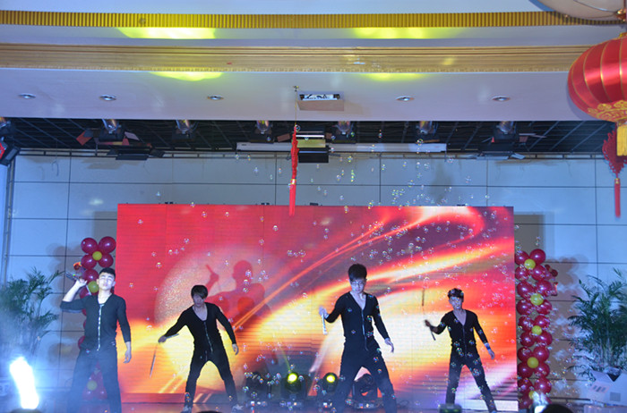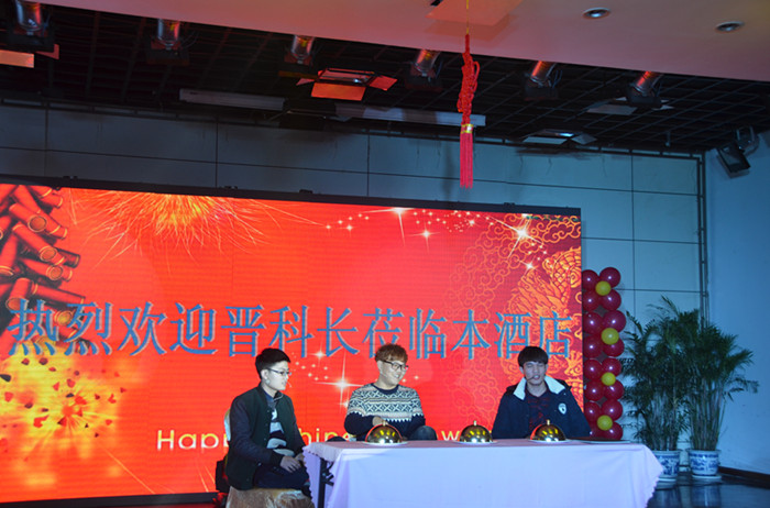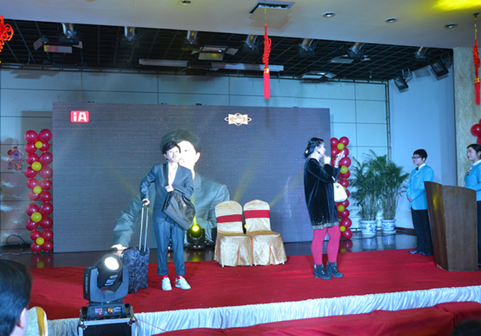 联欢会上,宾馆党总支书记、董事长、总经理田敏首先向全体员工致辞,给大家送上了最诚挚的新年祝福,同时寄予了新年期望。随后在动感的音乐伴奏中,餐饮部女孩子们带来的青春活力舞蹈《小苹果》拉开了联欢会的帷幕。整场联欢会节目精彩纷呈,高潮迭起。其中安全部孙建龙的男声独唱《我像雪花天上来》让员工眼前为之一亮,掌声不绝。房务部小品《土豪住店》让大家捧腹爆笑。员工们纷纷奉上《夜半小夜曲》、《泪海》、《片片枫叶情》等风格各异的歌曲,广受欢迎。