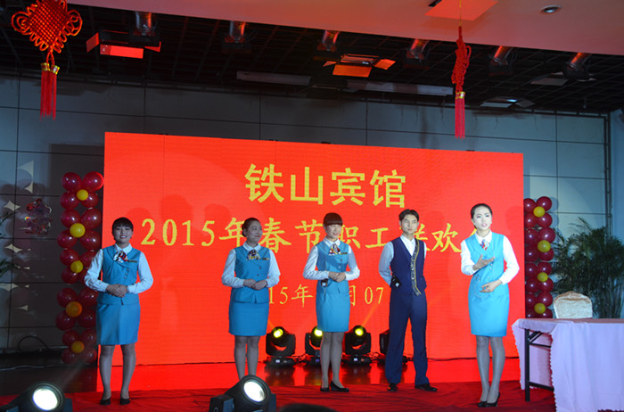 “春满铁山迎吉羊,宏图再展谱新篇”。值此辞旧迎新之际,我馆迎来了一场集歌曲、舞蹈、小品为一体的大型视听盛宴。2月7日下午,“2015年铁山宾馆春节联欢会”在宾馆大宴会厅隆重举行。300多名员工欢聚一堂,自编自演了歌舞、小品等节目,展示了铁山员工充满活力和多彩绚烂的一面,体现了铁山和谐、积极、向上和充满正能量的企业文化。