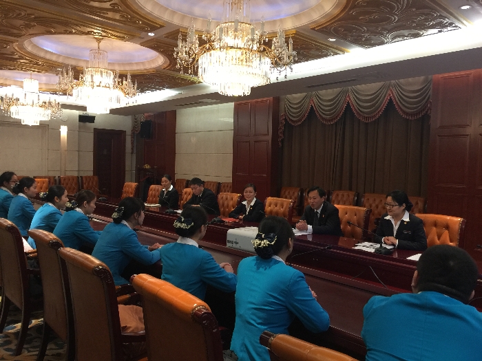 会上,来宾馆实习的同学们热情大方地进行自我介绍,使大家互相之间有了进一步了解。通过播放宾馆宣传片,让同学们了解宾馆的概况和历史文化。餐饮总监朱承志和房务部副经理罗强燕分别介绍本部门的具体情况,希望大家能够尽快熟悉工作流程,适应从学生到职场人的身份转变并尽快融入这个大集体。行政总监刘景洪在工作岗位、人身安全等方面向同学们进行了宣传和教育,同时叮嘱同学们安全、顺利地完成实习。最后,副总经理汪春玲分享当年自己实习的亲身经历,鼓励大家要不断努力,提升自己,并指出宾馆有着广大的发展空间和职业发展平台,希望同学们能够发挥自己的特长,学以致用。