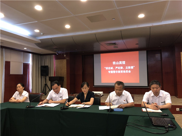 7月24日下午,宾馆党委召开中层以上管理干部会议,就开展“讲忠诚、严纪律、立政德”专题警示教育进行动员部署,党委委员、总经理助理刘洪主持会议。