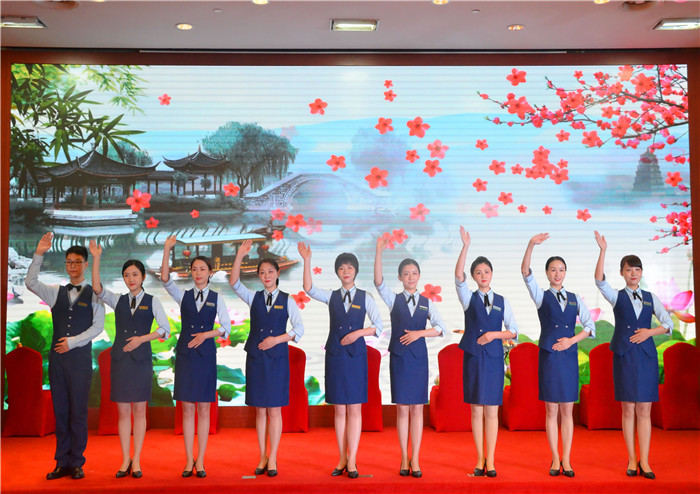 铁山宾馆以规范贴心的服务取胜。快看,身着制服的铁山服务人员上台了,他们带来了《礼仪工装秀》,站姿、微笑、行礼、服务……标准化一的动作、亲切自然的仪态,折服了在场所有嘉宾,他们纷纷拿起手机拍照、给予了表演人员热烈的掌声。