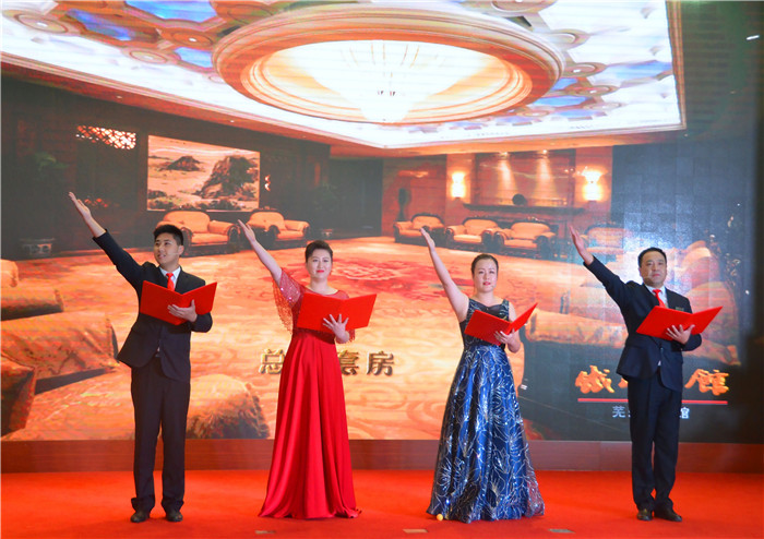 芜湖好人、道德模范、劳动模范、群众代表及政府、企业代表济济一堂,既有白发老人、也有垂髫小友,宾朋满座、其乐融融。铁山宾馆总经理汪春玲向来宾致辞,回顾建馆65年来的发展历程、总结宾馆转型发展、改革创新的成功经验,并向多年来对铁山宾馆给予支持的社会各界人士表达了感谢,期待与众位老友新朋在未来的日子里,携手谱写铁山新的篇章。