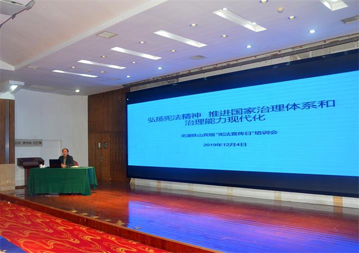 宾馆特邀安徽文理律师事务所合伙人、镜湖区政协委员、南京师范大学法学院客座教授尹家德律师为管理人员授课