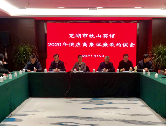 春节将至,为深入贯彻落实党风廉政建设责任制,针对廉洁风险点,进一步加强廉洁风险防控措施,强化对供应商的监督管理,1月16日下午,宾馆组织31家中、小型供应商开展了集体廉洁谈话,宾馆党委副书记、总经理汪春玲,党委委员、纪委书记刘景洪、党委委员、总经理助理刘洪、采购部经理吕峥嵘及采购部工作人员等参加了会议。