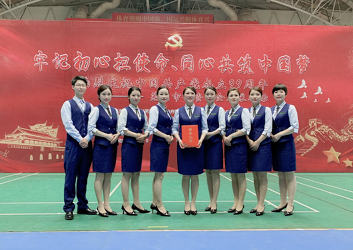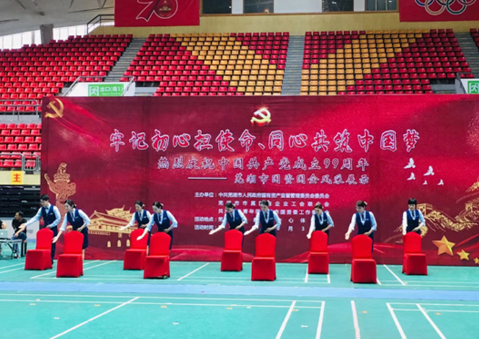 为热烈庆祝中国共产党成立99周年,2020年6月30日下午,市国资委开展以“牢记初心担使命、同心共筑中国梦”为主题的国资国企风采展示活动。来自市国资委、财政局和市属国有企业共23个节目参加展示。铁山宾馆“接待礼仪工装秀”展示节目荣获二等奖。