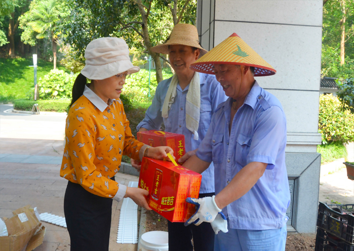 馆领导叮嘱员工们注意防暑降温,劳逸结合,科学合理地安排好作息时间,加强自身防护,保证身体健康。同时也希望大家继续发扬爱岗敬业、无私奉献的精神,让坚守在一线高温岗位的员工们实实在在地感受到了宾馆领导的关爱。