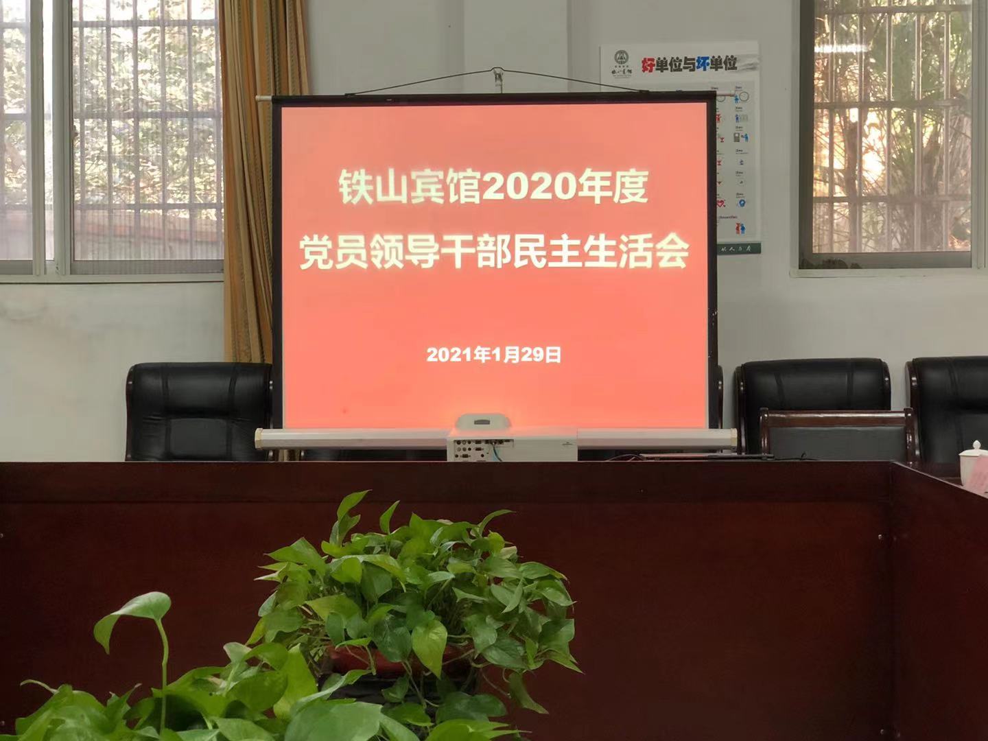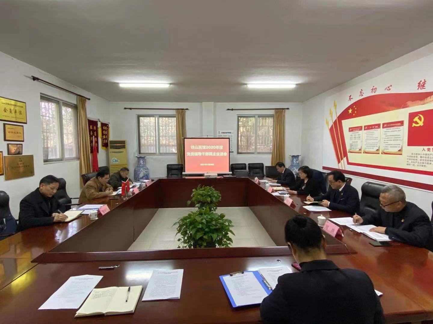 1月29日下午,铁山宾馆党委召开铁山宾馆关于召开2020年度党员领导干部民主生活会。市委第二巡察组领导吴健、市国资委纪检组组长孟寺坡、李时雨参加会议,宾馆党委书记、总经理汪春玲主持会议。