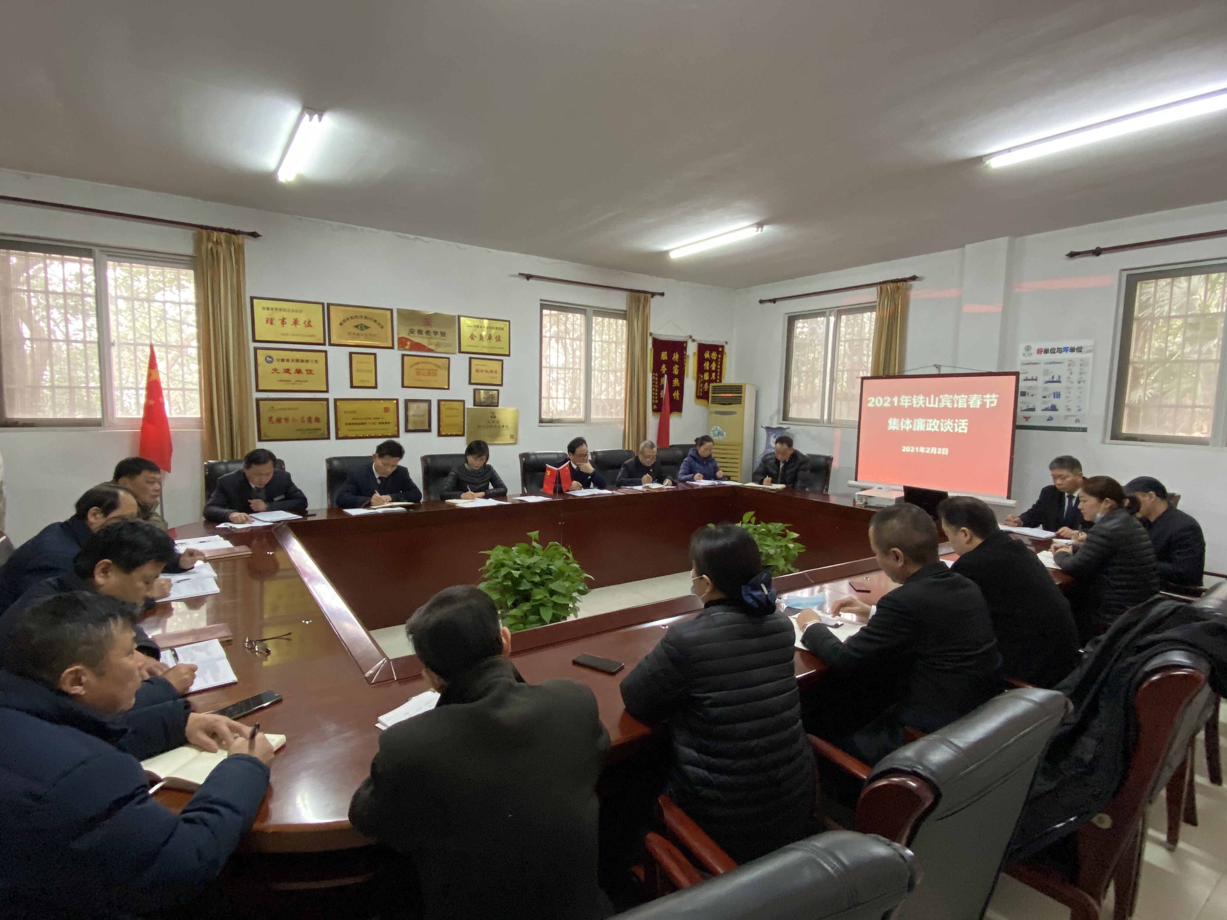 2021年2月2日下午,宾馆在办公楼会议室召开中层以上干部大会,学习传达上级关于春节期间作风建设工作要求并开展集体廉政谈话。会议由党委书记、总经理汪春玲主持。
