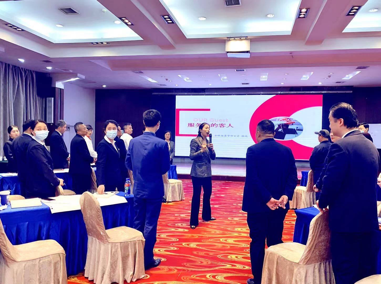 下午顾问组一行在礼堂为宾馆一线业务骨干、部门各级管理人员,以《服务我的宾客》为主题,进行了一场生动、精彩、实效的业务培训。