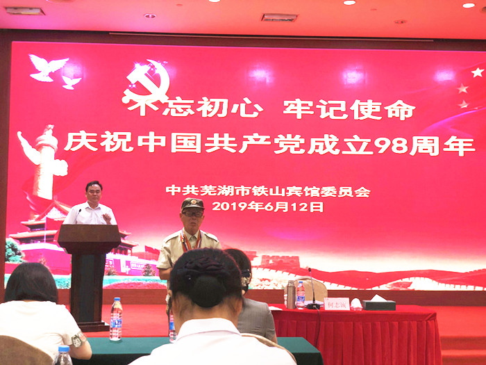 2019年6月12日下午,为庆祝即将到来的中国共产党98周年生日,铁山宾馆党委班子成员及宾馆全体党员,并诚邀赭山派出所党员代表共同参加宾馆举办的“不忘初心,牢记使命”建党98周年活动。